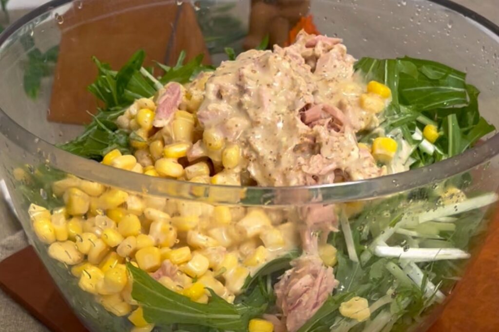 市販のごまドレッシングを使用すれば、少ない調味料でもしっかり味が決まり、満足感のある一品に仕上がります。
