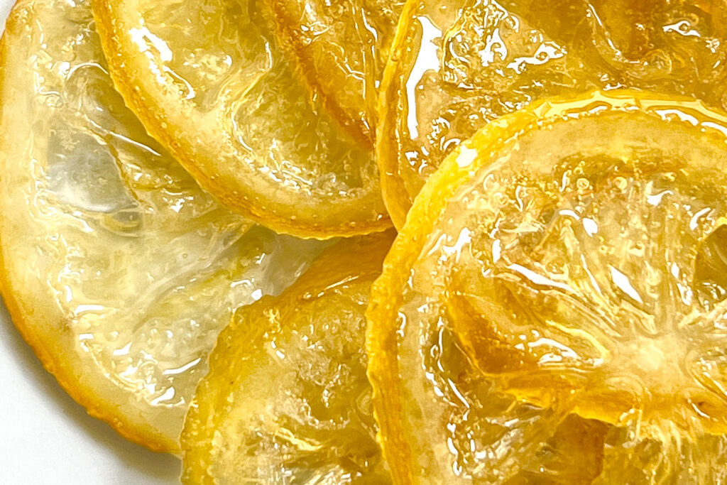 - 茹でたレモンを③の砂糖液に入れ、煮詰める。