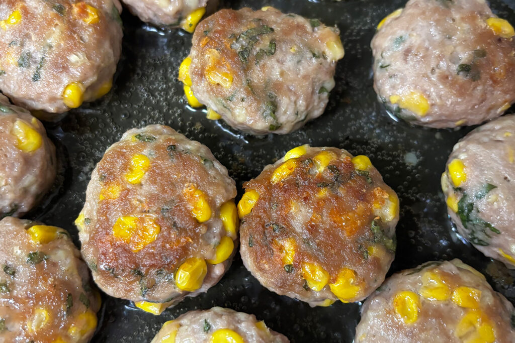 豚ひき肉にチーズとコーンを加えた、食べごたえのあるつくねです。