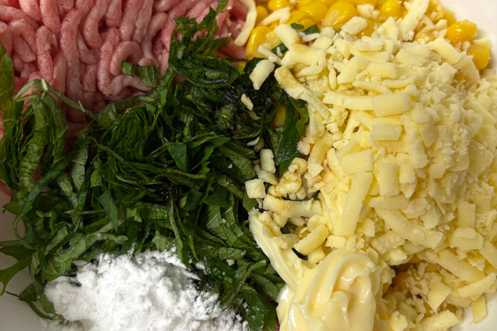 大葉を加えることで風味がよく、チーズとコーンの甘みが豚肉と相性抜群です。