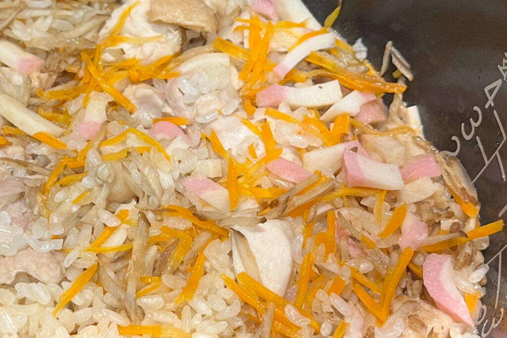 具材を切って炊飯器に入れるだけで作れる、手軽なのにしっかり味しみの釜飯風ごはんです。